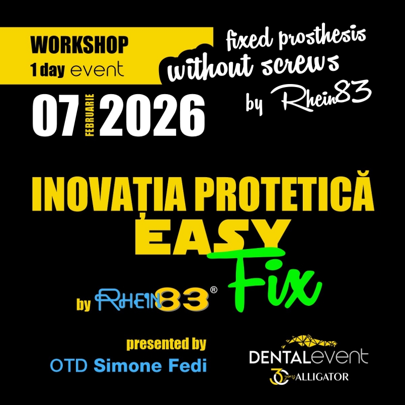 Participarea va permite participanților să învețe despre o tehnică inovatoare pentru proteză fixă completă fără utilizarea șuruburilor protetice. Tehnica EASY FIX este aplicabilă tuturor tipurilor de implanturi, atât cunoscute, cât și necunoscute. Medicii și tehnicienii vor învăța un protocol operațional repetabil folosind atașamentul Ot Equator ca bont secundar înșurubat pe implant. Accentul va fi pus pe rezolvarea problemelor legate de protezele pe implanturi:
